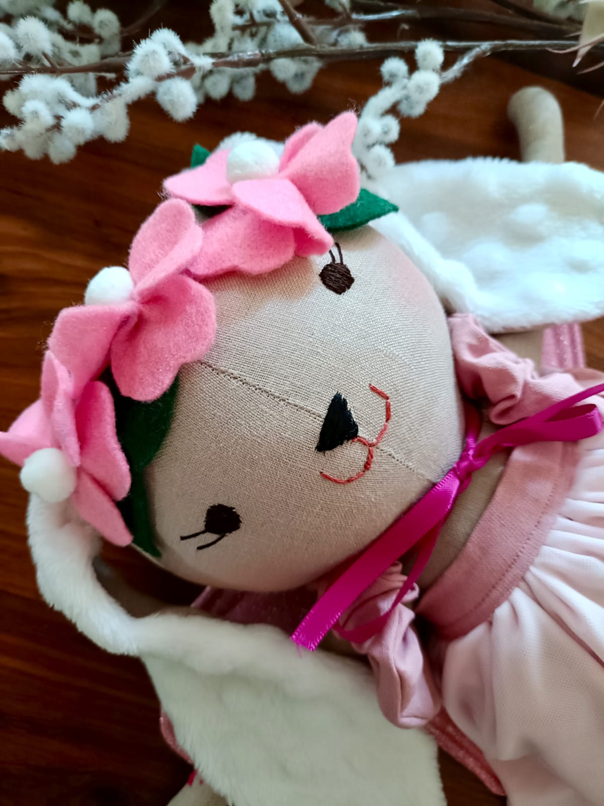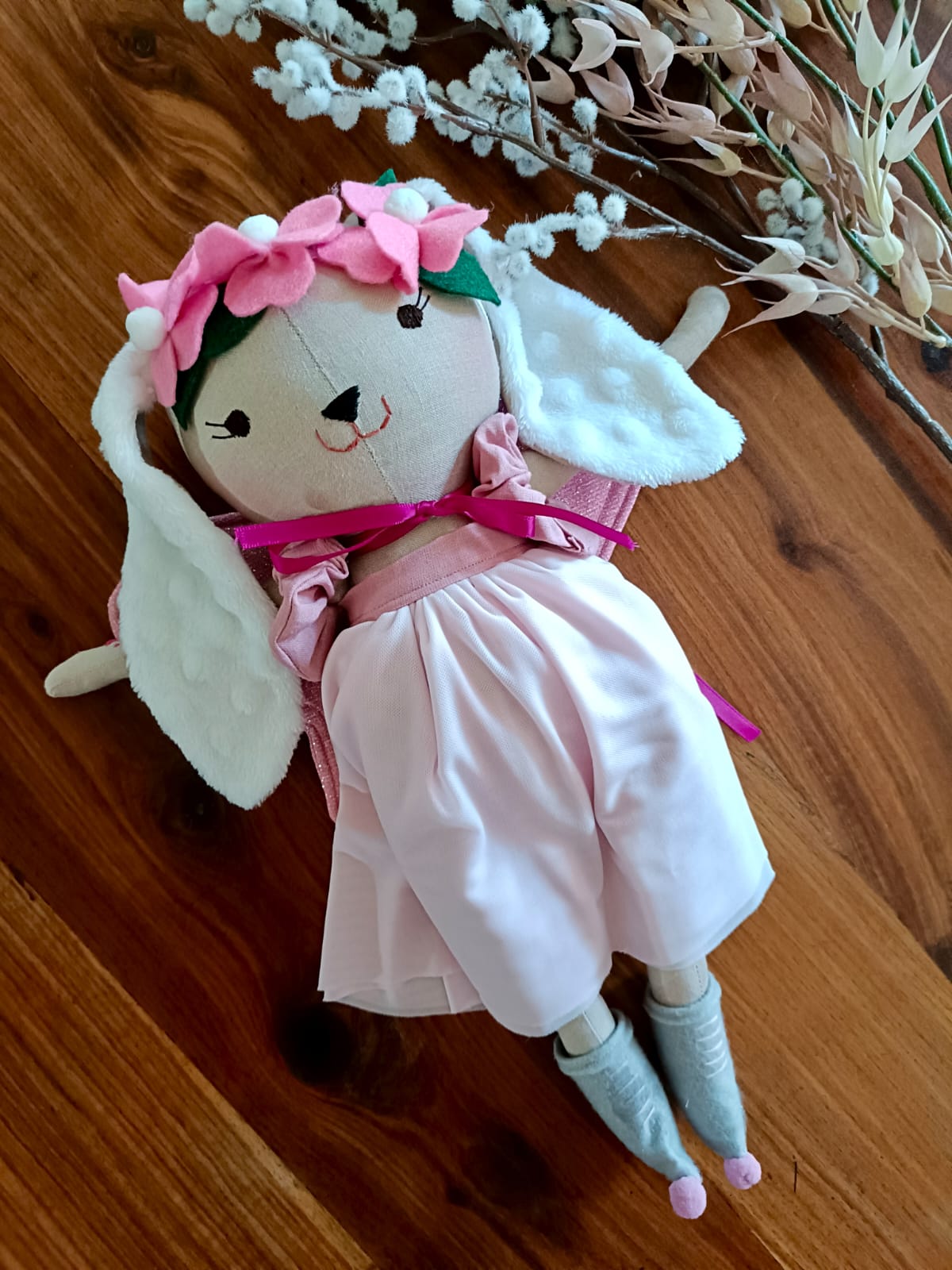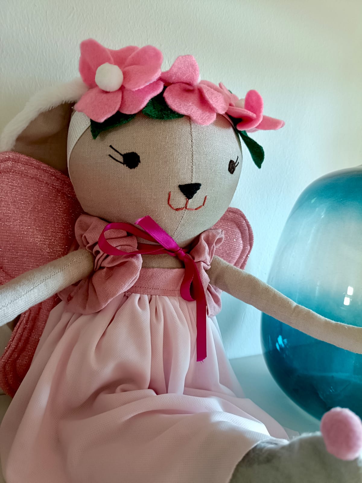 Mia wears a dreamy, fairy-inspired outfit with delicate soft wings, perfect for storytelling, magical adventures, and imaginative play. Every detail — from her outfit to her expressive eyes — is made with love, patience, and creativity.